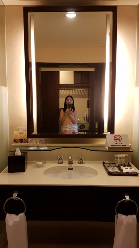 Room – 4.5 out of 5. Taal Vista Hotel spells luxury. Our room, even if it is just a deluxe one, is very gorgeous. It has a view of the Sky Ranch and if you lean a little to the right, you can have a slight view of Taal lake. It has a king size bed and a day bed (perfect for Neo), an LED television, mini fridge (with complimentary water as content), work desk, electric kettle with complimentary coffee, a chair that can hold your belongings. It has a cabinet that has slippers, iron and ironing board, and safety deposit box. They offer bathrobes upon request (but the bathrobes are really old and worn out ☹). The room has a big book containing all the places in Tagaytay a tourist wants to visit along with how far it is from Taal Vista. The room has a separate toilet and bath (without bathtub, and I really love bathtubs in hotels… ☹) with complete toiletries from Natur (I love the ginger scent!). This room would have been perfect if it has a bathtub and the bathrobes were not worn out.