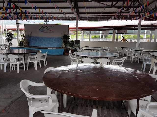 We stayed at one of the air-conditioned family rooms with six beds, a bathroom, television set, a stand fan, a wall fan, dresser, and cabinet. This room also has towels and some toiletries (soaps and tissues). The room is big and the air-conditioning unit looks old and I expected us to feel hot, but I was surprised that with 8 of us staying in the room, the room was really cold. We were also given a huge round table outside the room for dining.